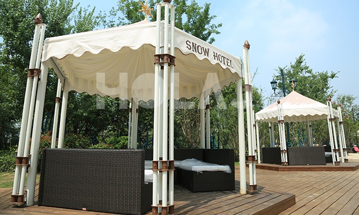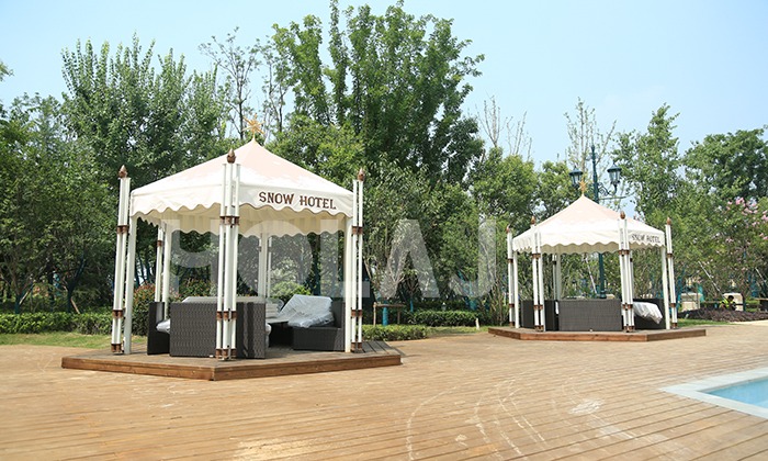 我司嚴(yán)格執(zhí)行ISO9001的質(zhì)量管理體系,確保不良產(chǎn)品的最小化及客戶(hù)滿(mǎn)意度的最大化。我們的的主要產(chǎn)品包括可移動(dòng)的模塊化鋁合金支架篷房,有不同風(fēng)格的篷房及裝飾可供選擇,篷房跨度從3米到60米。此外,還包括錐頂篷房和吊頂篷房,以及篷房配件,如照明燈具、地板、空調(diào)、桌椅及其它用于篷房?jī)?nèi)部的家具。篷房可廣泛應(yīng)用于大小型活動(dòng)、婚慶、展會(huì)、體育、酒店、航空和工業(yè)等其它領(lǐng)域。篷房框架結(jié)構(gòu)為高強(qiáng)度鋁合金6061/T6型材,篷布為防水、阻燃的雙面PVC涂層聚酯纖維布,主體結(jié)構(gòu)風(fēng)載荷不少于100Km/h。